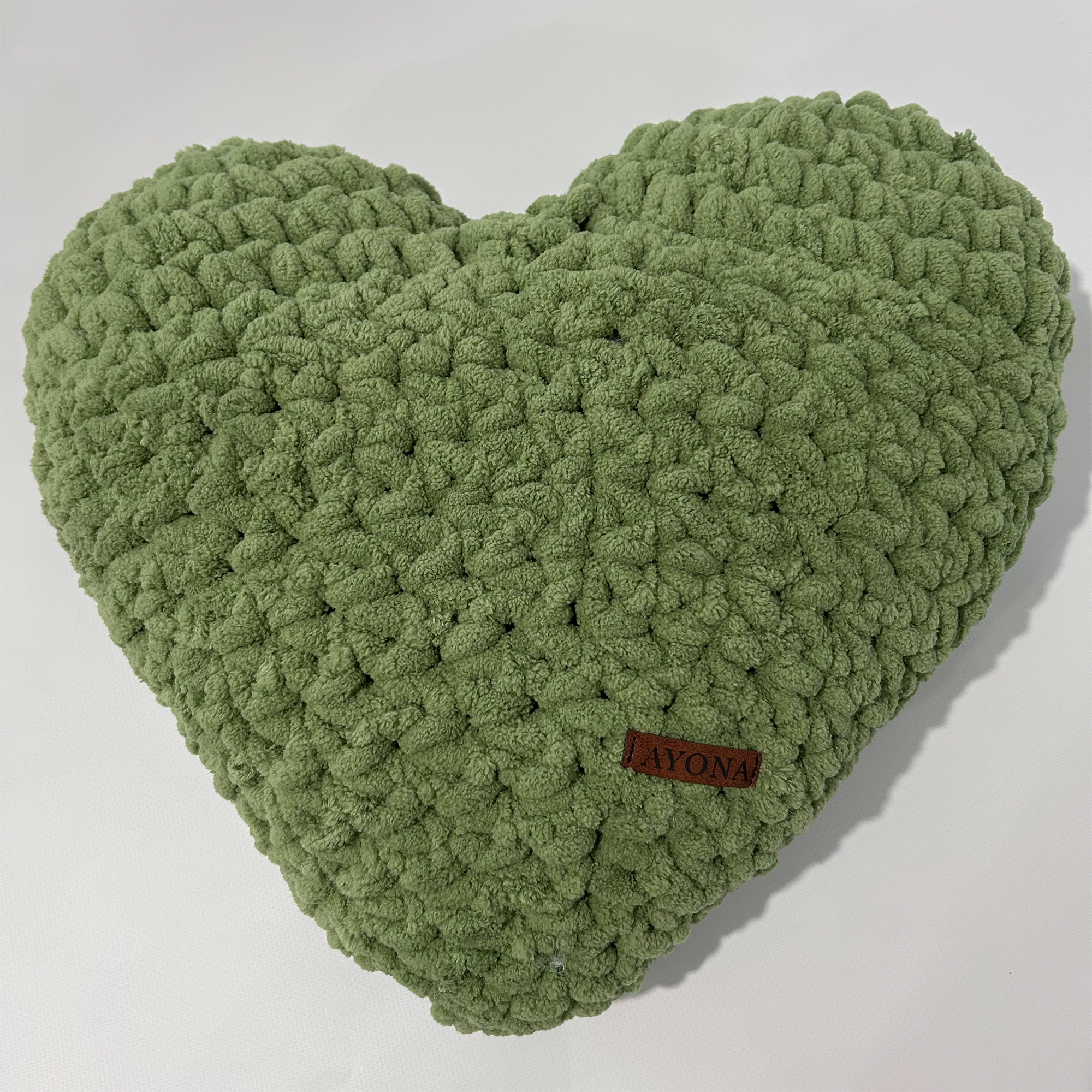 Ayona El Örgüsü Fıstık Yeşili Kalp Yastık – Sevgililer Günü’ne Özel, Sevgiyle Örülmüş En Anlamlı Hediye