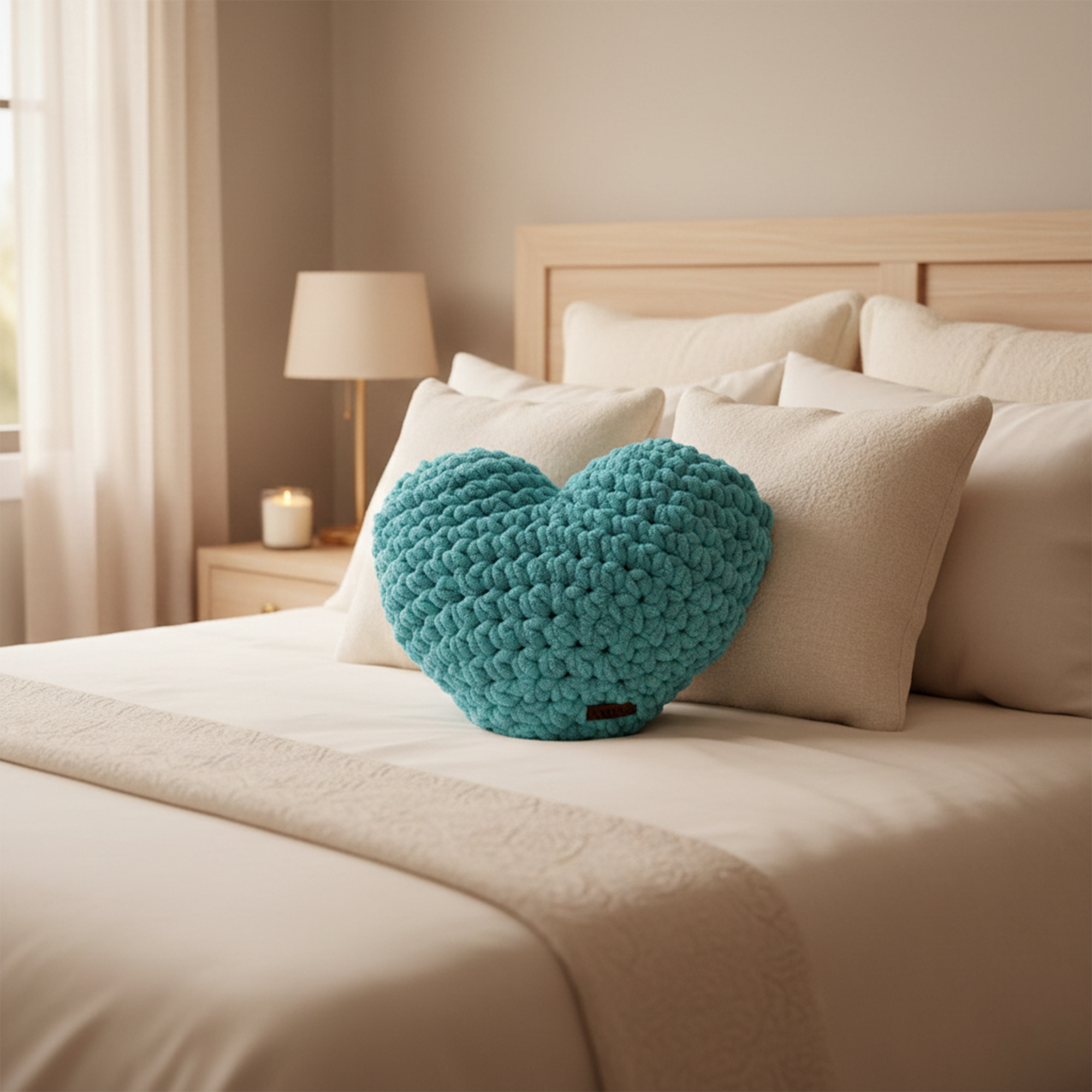 • Sevginin İkonik Sembolü: Kalp formuyla aşkı simgelerken, özel örgü dokusuyla sıradan dekoratif ürünlerden ayrışır.